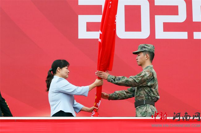 大會現(xiàn)場,李廣慧、李志萍分別向兩校區(qū)軍訓團授旗。軍訓教官代表張鵬、楊勇發(fā)出號召,鼓勵新生直面考驗、超越自我,以昂揚斗志開啟迷彩青春。(河南水利與環(huán)境職業(yè)學院供稿)