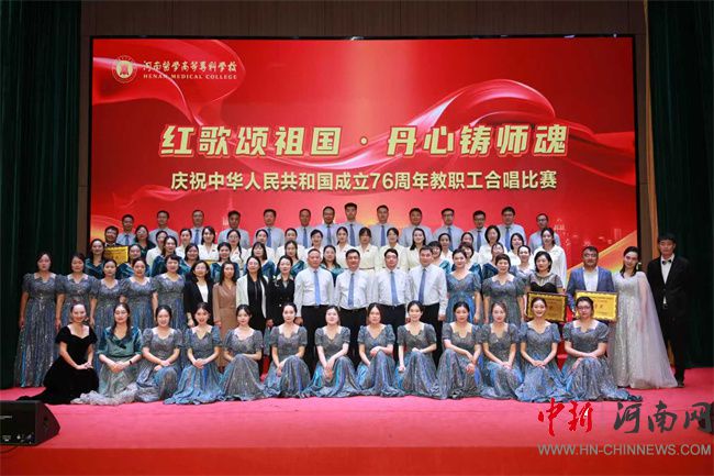 中新河南網(wǎng)9月28日電(劉燕 蔡雨) 金秋送爽,丹桂飄香。為慶祝中華人民共和國成立76周年,激發(fā)廣大教職工愛國情懷與責(zé)任擔(dān)當,9月25日,河南醫(yī)學(xué)高等?茖W(xué)校“紅歌頌祖國 丹心鑄師魂”教職工合唱比賽在公共藝術(shù)中心隆重舉行。
