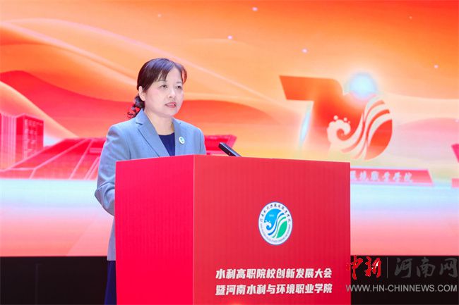 隨后,河南水利與環(huán)境職業(yè)學(xué)院校長(zhǎng)李志萍發(fā)表了題為《深耕水利職教七十載 譜寫創(chuàng)新發(fā)展新篇章》的工作報(bào)告。她系統(tǒng)梳理了學(xué)校從“因水而建”的初創(chuàng)期、“依水而興”的發(fā)展期到“循水而進(jìn)”的跨越期的奮進(jìn)歷程。從百業(yè)待興的1955年到全面振興的2025年,河南水環(huán)學(xué)院三遷校址、八易校名,在水利事業(yè)和職業(yè)教育事業(yè)由小變大、由弱變強(qiáng)的歷史進(jìn)程中,走過了初心如磐、薪火相傳、求實(shí)奮進(jìn)的70年。