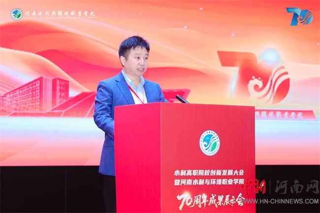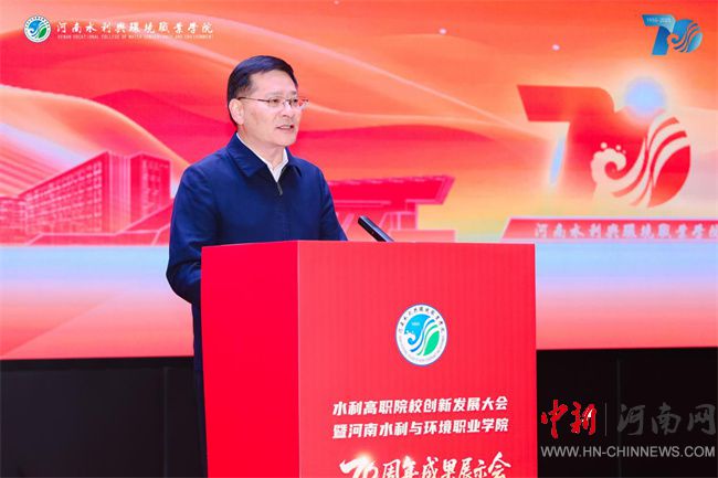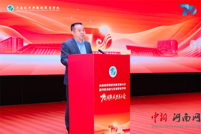 中新河南網(wǎng)10月14日電 七秩芳華,水利千秋。10月12日,河南水利與環(huán)境職業(yè)學(xué)院校園內(nèi)高朋滿座、勝友如云,水利高職院校創(chuàng)新發(fā)展大會(huì)暨辦學(xué)70周年成果展示會(huì)在此隆重舉行。河南省教育廳黨組成員、省委教育工委專職副書記劉林亞,河南省水利廳黨組成員、副廳長(zhǎng)、一級(jí)巡視員劉玉柏,河南省水利廳副廳長(zhǎng)祝云憲等各級(jí)領(lǐng)導(dǎo)、兄弟院校代表、行業(yè)企業(yè)嘉賓、各界校友及在校師生齊聚一堂,共慶學(xué)校七十華誕,共謀水利職業(yè)教育創(chuàng)新發(fā)展大計(jì)。