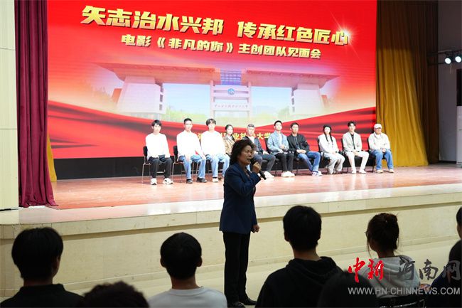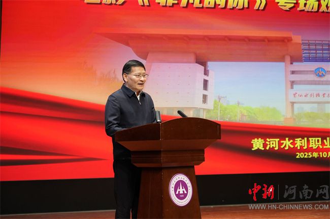 劉林亞致辭。他指出,省教育廳始終將“強(qiáng)化思政引領(lǐng)、推動產(chǎn)教融合、培育特色名校”作為工作重點(diǎn),持續(xù)為高校高質(zhì)量發(fā)展保駕護(hù)航。電影《非凡的你》以紅旗渠設(shè)計(jì)師、黃河水利職業(yè)技術(shù)大學(xué)杰出校友吳祖泰為原型,生動詮釋了紅旗渠精神,為全省高校開展紅色思政教育提供了一部鮮活的“教材”。希望黃河水利職業(yè)技術(shù)大學(xué)以本次活動為契機(jī),進(jìn)一步把紅旗渠精神融入辦學(xué)治校、教書育人全過程,培養(yǎng)更多像吳祖泰一樣“有理想、敢擔(dān)當(dāng)、能吃苦、肯奮斗”的新時代水利人;希望全省高校以《非凡的你》為范例,探索更多“藝術(shù) + 思政”“行業(yè)+育人”新路徑,讓思政育人更有溫度、更接地氣、更入人心;也希望青年學(xué)子們從影片中汲取“不認(rèn)命、不服輸”的力量,把個人理想融入國家發(fā)展大局,在技能報(bào)國、強(qiáng)國建設(shè)的征程中,書寫屬于自己的“非凡”篇章。