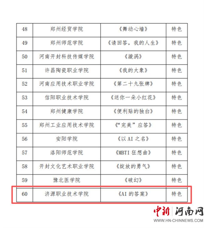 中新河南網(wǎng)10月21日電(張亞麗) 近日,省委教育工委、省教育廳公布了2025年全省高校心理情景劇作品征集活動遴選結(jié)果。濟源職業(yè)技術學院選送作品《AI的答案》被評為特色作品。