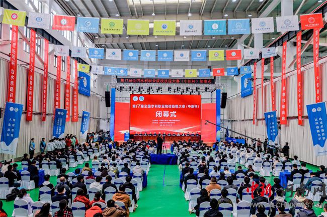 水利部人事司副司長王健,中國水利教育協(xié)會會長張明俊,中國水利教育協(xié)會副會長兼秘書長曹陽,以及水利部人事司、相關(guān)院校領(lǐng)導(dǎo)出席閉幕式。來自全國39所水利職業(yè)院校的500余名參賽選手、領(lǐng)隊、指導(dǎo)教師、裁判員代表等參加了閉幕式。張明俊會長主持閉幕式。