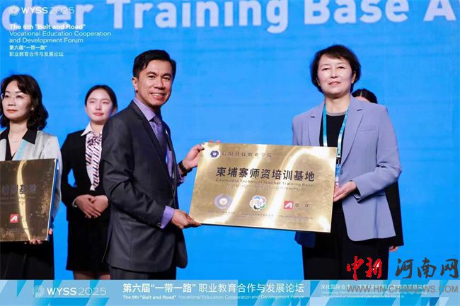論壇期間,柬埔寨勞工與職業(yè)培訓(xùn)部國(guó)務(wù)秘書謝顧所授予信陽(yáng)科技職業(yè)學(xué)院“柬埔寨師資培訓(xùn)基地”牌匾,標(biāo)志著該校在推進(jìn)國(guó)際化辦學(xué)、服務(wù)“一帶一路”職業(yè)教育合作方面邁出了實(shí)質(zhì)性步伐。
