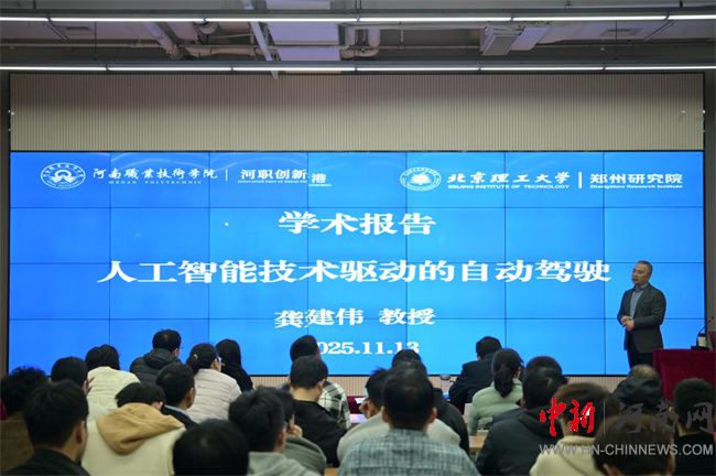 中新河南網(wǎng)11月15日電(戴磊) 11月13日下午,河南職業(yè)技術學院在河職創(chuàng)新港519學術報告廳舉辦“人工智能技術驅動的自動駕駛”學術報告會。北京理工大學機械與車輛學院教授、博士生導師龔建偉圍繞“AI+自動駕駛”的技術演進、關鍵算法與產(chǎn)業(yè)落地作專題分享。學校高層次人才、汽車與交通學院師生代表110余人參會。