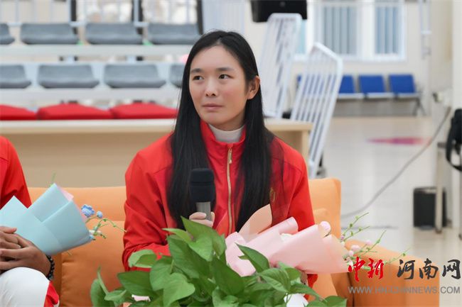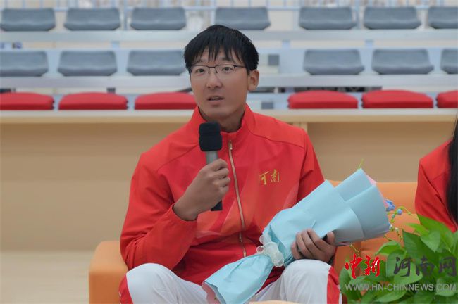 交流分享環(huán)節(jié)中,冠軍團(tuán)隊(duì)帶來了干貨滿滿的成長(zhǎng)故事。劉又菲在回應(yīng)“如何走上賽艇道路”時(shí),回顧了自己從南陽市體校起步、逐步走向全國(guó)賽場(chǎng)的成長(zhǎng)歷程。她坦言,備戰(zhàn)全運(yùn)會(huì)期間經(jīng)歷了高強(qiáng)度、系統(tǒng)化的訓(xùn)練,也曾在困難面前產(chǎn)生過自我懷疑,但正是對(duì)賽艇運(yùn)動(dòng)的熱愛與團(tuán)隊(duì)的信任支持她一次次突破自我。她還分享了2021年在全國(guó)賽艇春季冠軍賽奪冠并創(chuàng)下半決賽最快成績(jī)的難忘經(jīng)歷,以及征戰(zhàn)全運(yùn)會(huì)、世界杯的精彩歷程,并表示未來將繼續(xù)努力,為南陽、為河南、為祖國(guó)爭(zhēng)光。崔兵輝則分享了比賽中應(yīng)對(duì)突發(fā)狀況的經(jīng)歷,并強(qiáng)調(diào)了心態(tài)調(diào)節(jié)的重要性。他結(jié)合自身參賽經(jīng)歷,闡述了團(tuán)隊(duì)協(xié)作與信任在賽艇運(yùn)動(dòng)中的關(guān)鍵作用,鼓勵(lì)同學(xué)們?cè)谧穳?mèng)路上堅(jiān)定信念、直面挑戰(zhàn)。他表示,教練劉剛不僅在技術(shù)上給予精準(zhǔn)指導(dǎo),更在心理上給予持續(xù)鼓勵(lì),是自己運(yùn)動(dòng)生涯中重要的引路人。