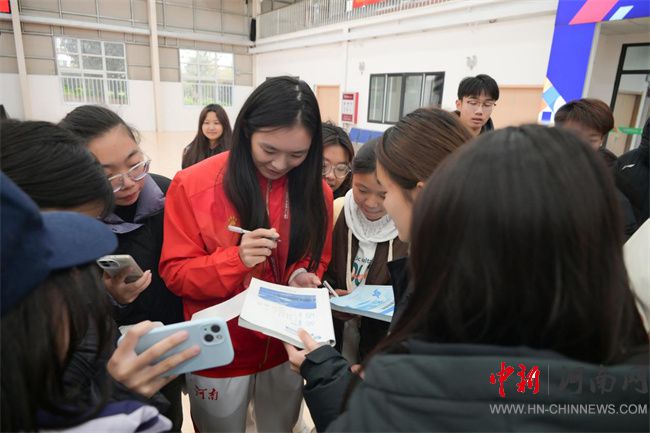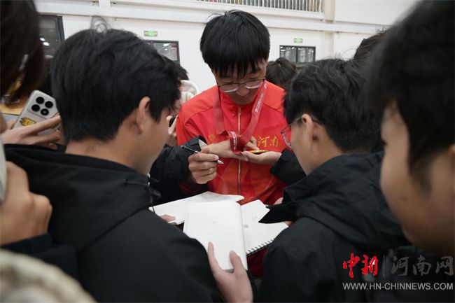 互動(dòng)問答環(huán)節(jié)氣氛熱烈,現(xiàn)場(chǎng)學(xué)子踴躍提問,圍繞運(yùn)動(dòng)訓(xùn)練日常、心理調(diào)節(jié)、職業(yè)規(guī)劃等問題與冠軍團(tuán)隊(duì)深入交流。面對(duì)同學(xué)們提出的“印象最深刻的比賽”“未來備戰(zhàn)目標(biāo)”等問題,冠軍們結(jié)合自身經(jīng)歷一一回應(yīng),真誠分享心得體會(huì)。