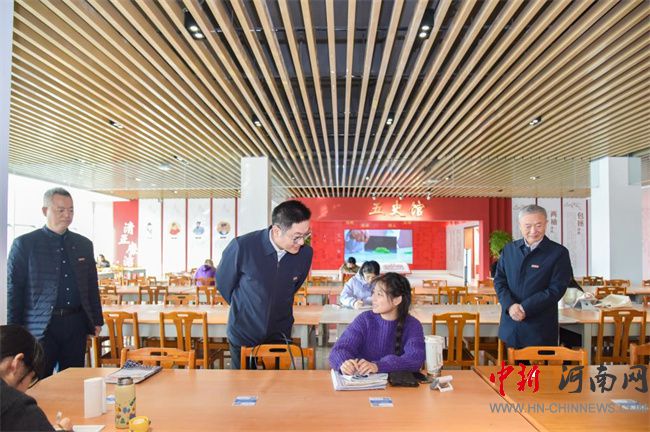 中新河南網(wǎng)12月3日電(谷世飛) 12月2日上午,河南職業(yè)技術(shù)學(xué)院黨委書記厲勵(lì)深入圖書館走訪調(diào)研。校黨委副書記、工會(huì)主席田華,校黨委委員、副校長李玉峰,黨政辦公室、黨委宣傳部、基本建設(shè)處、信息中心、后勤管理處等相關(guān)職能部門負(fù)責(zé)同志一同參加調(diào)研。