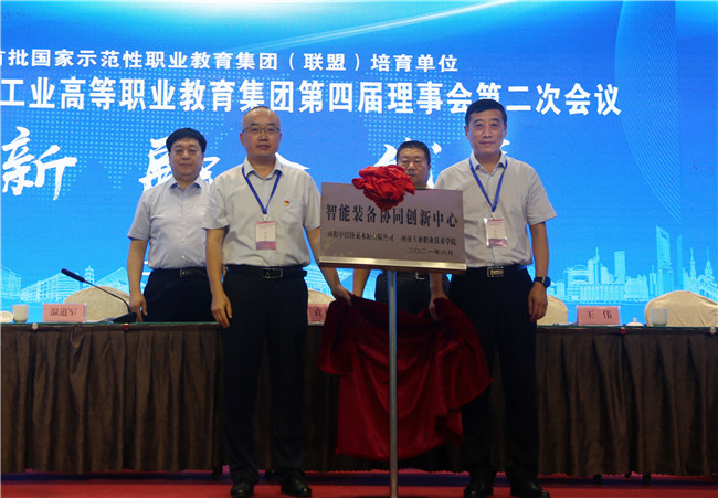 會議上,舉行了“航天裝備制造產(chǎn)業(yè)學(xué)院”、“智能裝備協(xié)同創(chuàng)新中心”揭牌儀式。河南國防科技工業(yè)高等職業(yè)教育集團理事長、河南工業(yè)職業(yè)技術(shù)學(xué)院校長王偉,河南航天精工制造有限公司黨委副書記、紀(jì)委書記徐琳,鄭州航天電子技術(shù)有限公司人力資源處處長張清亮,河南航天液壓氣動技術(shù)有限公司智能制造中心主任郭寧共同為“航天裝備制造產(chǎn)業(yè)學(xué)院”揭牌。河南國防科技工業(yè)高等職業(yè)教育集團理事長、河南工業(yè)職業(yè)技術(shù)學(xué)院校長王偉,南陽中聯(lián)臥龍水泥有限公司副總經(jīng)理李欣濤共同為“智能裝備協(xié)同創(chuàng)新中心”揭牌。