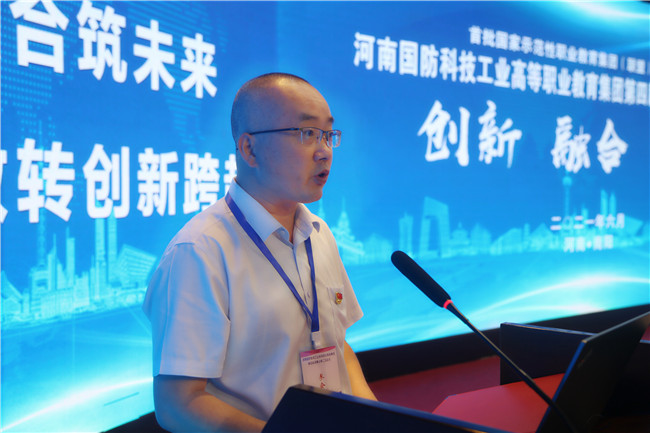 唐遠游代表省委軍民融合委員會辦公室,對大會的召開表示熱烈的祝賀。唐遠游在講話中指出2020年10月,河南國防科技工業(yè)高等職業(yè)教育集團被教育部評為第一批國家示范性職教集團培育單位,這是對河南國防科技工業(yè)職教工作的充分肯定,也是對集團成員單位賦予的新使命、新機遇、新挑戰(zhàn)。要進一步發(fā)揮河南國防科技工業(yè)高等職業(yè)教育集團“提質(zhì)培優(yōu)、增值賦能、示范引領(lǐng)、服務(wù)發(fā)展”的作用,真正把河南國防科技工業(yè)高等職業(yè)教育集團打造成為特色鮮明、功能齊全、輻射面廣、示范性強的國家級的示范單位,為服務(wù)國防科技工業(yè)高質(zhì)量發(fā)展作出貢獻。