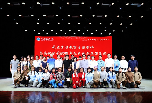 中新河南網(wǎng)6月26日電(魏豪 吳德強(qiáng))崢嶸歲月心向黨,光輝歷程譜華章。6月24日下午,河南職業(yè)技術(shù)學(xué)院在音樂(lè)廳隆重舉辦“永遠(yuǎn)跟黨走 奮進(jìn)新時(shí)代”黨史學(xué)習(xí)教育主題宣講暨慶祝建黨100周年紅色話劇展演活動(dòng),進(jìn)一步推動(dòng)學(xué)校黨史學(xué)習(xí)教育走深走實(shí),為建黨100周年獻(xiàn)禮。