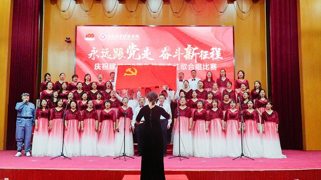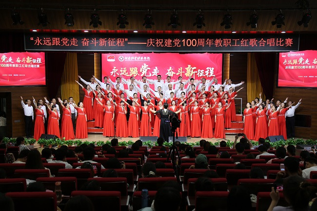 胸懷千秋偉業(yè),恰是百年風華。唱響百年歲月,傳承紅色基因,全體教職工將堅定信念跟黨走、擔當作為新時代、立足崗位做貢獻,以昂揚姿態(tài)投入學校建設新征程,不斷書寫新的歷史、創(chuàng)造新的輝煌。