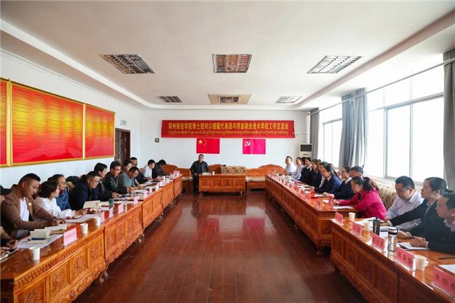 王艷珍轉(zhuǎn)達(dá)了學(xué)校領(lǐng)導(dǎo)班子對(duì)那曲職校的親切問(wèn)候,介紹了鄭州財(cái)經(jīng)學(xué)院近年來(lái)發(fā)展概況及新校區(qū)建設(shè)情況,對(duì)那曲職校教育工作者為藏區(qū)教育事業(yè)發(fā)展作出的貢獻(xiàn)表達(dá)欽佩之情。