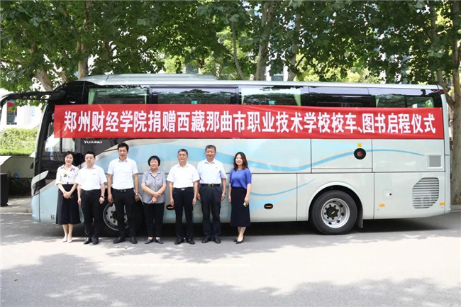 交流會(huì)后,雙方在學(xué)校一號(hào)教學(xué)樓前舉行了捐贈(zèng)儀式。鄭州財(cái)經(jīng)學(xué)院向那曲職校捐贈(zèng)客車一輛、圖書(shū)一萬(wàn)冊(cè)。雙方交流期間,捐贈(zèng)圖書(shū)搭載捐贈(zèng)客車,已在6月23日由專業(yè)人員駕駛從鄭州財(cái)經(jīng)學(xué)院出發(fā),開(kāi)往那曲。