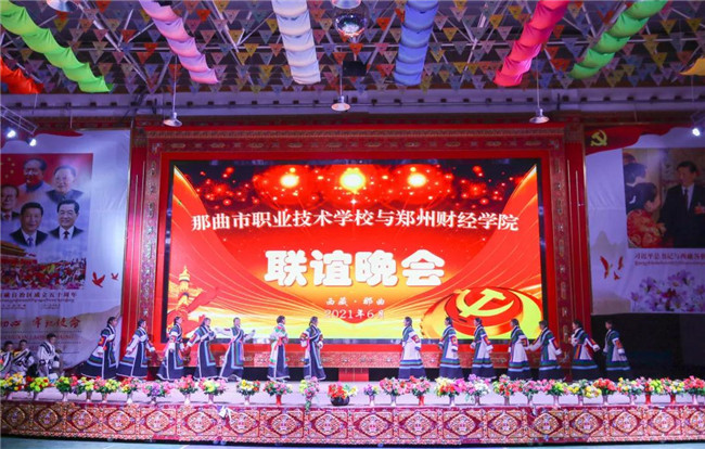 交流期間,那曲職校藝術(shù)團(tuán)還準(zhǔn)備了精彩的聯(lián)誼晚會(huì),藝術(shù)團(tuán)師生載歌載舞,熱情歡迎鄭州財(cái)經(jīng)學(xué)院援藏代表團(tuán)。婉轉(zhuǎn)悠揚(yáng)的歌聲,美輪美奐的舞蹈,盡展藏區(qū)同胞的熱情和民族風(fēng)情,為代表團(tuán)成員留下深刻的印象。