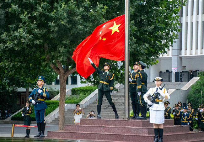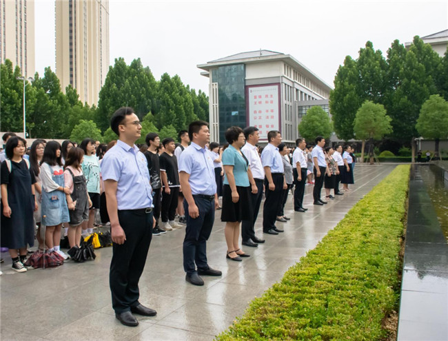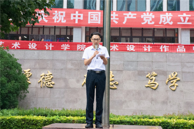 中新河南網(wǎng)6月30日電(魏豪)為慶祝中國共產黨成立100周年,謳歌中國共產黨的百年奮斗歷程,進一步增強鄭州財經(jīng)學院青年學生的歷史責任感、使命感和榮譽感,6月29日早上,在蒙蒙細雨中,鄭州財經(jīng)學院在圖書館前廣場隆重舉行“迎七一”升旗儀式暨“傳承紅色基因 迎接建黨百年”主題團日活動。校領導班子全體成員出席活動,黨委職能部門負責人、二級學院黨總支書記、副書記、團總支書記及學生代表參加活動。本次活動由校團委書記周二濤主持。