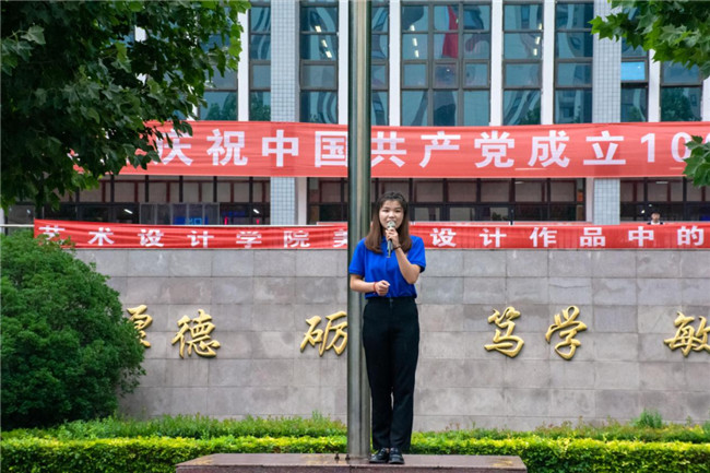 在國旗下,土木工程學院19級注造4班團支部書記、校青馬“秋實班”第三期學員張金菊帶來微團課展示《共產黨的百年風雨,青年人的一路同行》,重溫黨的光輝歷程,歌頌黨的偉大成就,表達了青年團員始終聽黨話、跟黨走的決心。