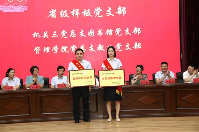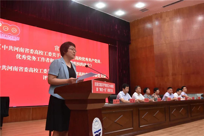 副校長陳靜宣讀了《中共河南省委高校工委關(guān)于表彰委管高校優(yōu)秀共產(chǎn)黨員、優(yōu)秀黨務(wù)工作者和先進(jìn)基層黨組織的決定》《中共河南省委高校工委關(guān)于公布首批全省高校省級樣板黨支部評審結(jié)果的通知》。