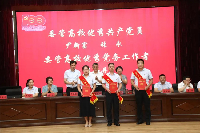 校領(lǐng)導(dǎo)為“委管高校優(yōu)秀共產(chǎn)黨員”和“委管高校優(yōu)秀黨務(wù)工作者”頒獎(jiǎng)