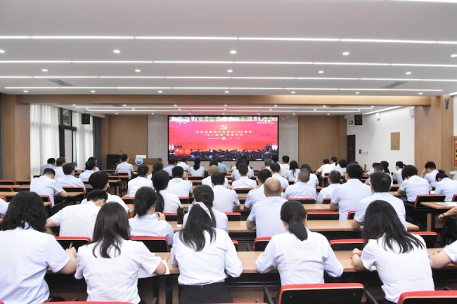 校黨政領導班子成員、科級及以上干部、黨委職能部門全體人員觀看“七一勛章”頒授儀式