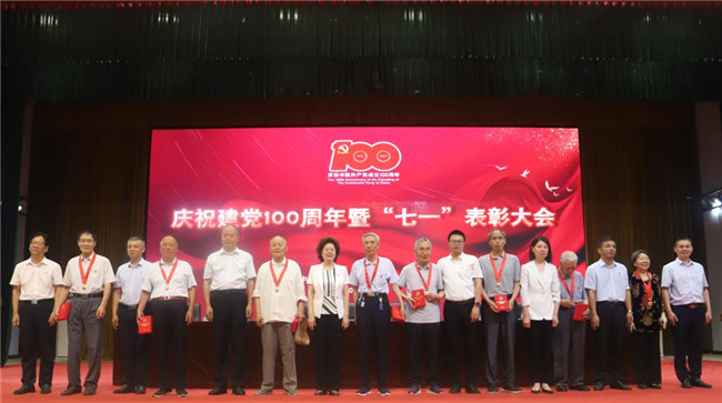 校黨委書記周保平代表學校黨委向全體黨員致以節(jié)日的問候,對光榮在黨50年的老黨員以及受到表彰的先進基層黨組織、優(yōu)秀共產黨員和優(yōu)秀黨務工作者表示熱烈祝賀。