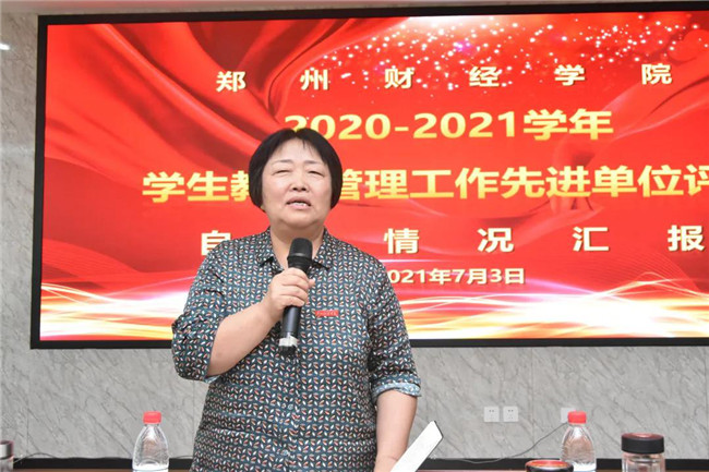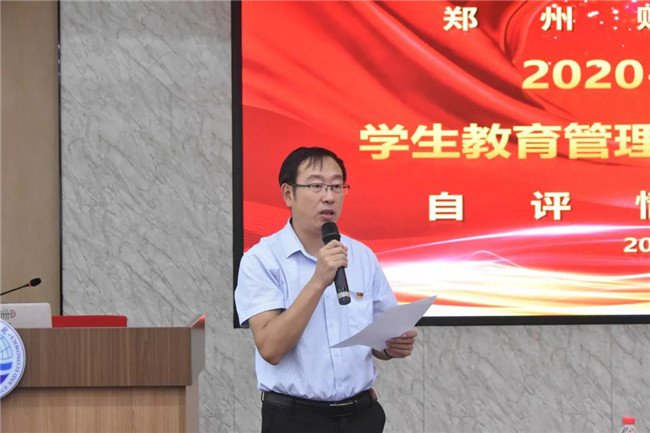 陳志強(qiáng)宣布2020-2021學(xué)年學(xué)生教育管理工作先進(jìn)單位評(píng)選自評(píng)情況匯報(bào)會(huì)正式開始。各二級(jí)學(xué)院匯報(bào)人按抽簽順序依次上臺(tái),按照量化考核標(biāo)準(zhǔn)要求,從學(xué)生工作管理方法,思想政治教育,日常行為管理和特色文化活動(dòng)等多個(gè)方面匯報(bào)了本學(xué)院一學(xué)年來(lái)的學(xué)生管理工作成果。