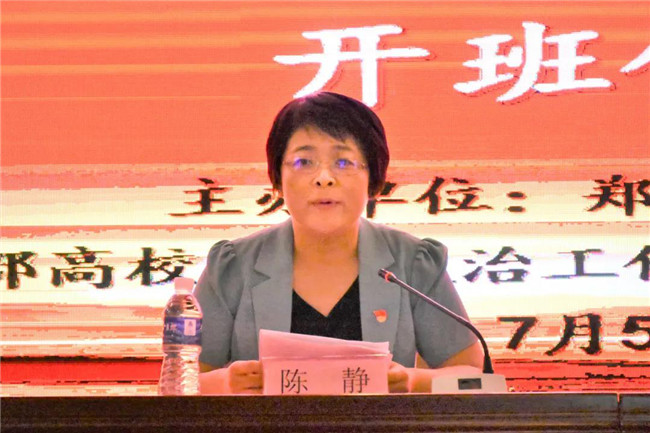 首先,副校長陳靜宣讀《中共鄭州財經(jīng)學院委員會辦公室關(guān)于舉辦2021年輔導員暑期素質(zhì)能力提升培訓班的通知》。希望通過本次培訓,引導該校輔導員在“學黨史、悟思想、辦實事、開新局”中提升思想政治工作質(zhì)量,鍛煉業(yè)務(wù)能力,提高育人水平。