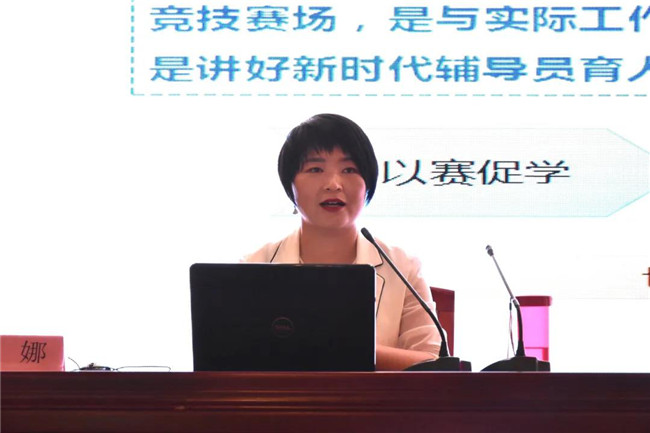 開班儀式后,聶娜作了《以輔導員素質(zhì)能力大賽促進輔導員職業(yè)發(fā)展》專題報告。她用自身實際經(jīng)歷對輔導員素質(zhì)能力大賽進行總結(jié)分享,對近年來輔導員素質(zhì)能力大賽賽制和規(guī)則變化進行分析解讀,引導大家在“動”中把握大賽之變,在“靜”中把握大賽不變,并對輔導員素質(zhì)能力大賽題型進行解析,具體實例的分享使在場輔導員深入學習了大賽的具體內(nèi)容,為其今后參加輔導員素質(zhì)能力大賽提供了寶貴的建議。