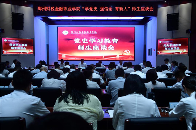 與該校師生代表互動交流后,黃卿部長發(fā)表講話。他指出,時值建黨百年之際,能夠來到鄭州財稅金融職業(yè)學院參加黨史學習教育座談會,交流、學習、體會,時機合適且意義重大。習近平總書記“七一”重要講話,高屋建瓴、視野宏闊、精辟深刻、震撼人心,全面回顧我們黨篳路藍縷、櫛風沐雨的百年歷史進程,系統(tǒng)總結我們黨奠基立業(yè)、鑄就輝煌的百年奮斗成就,深刻闡明我們黨獨立自主、實踐創(chuàng)造的百年發(fā)展規(guī)律,科學展望我們黨開拓進取、走向未來的百年宏偉藍圖,是一篇充滿真理力量的馬克思主義綱領性文獻,是馬克思主義中國化時代化的最新成果。他強調,廣大師生要把 “七一”重要講話作為黨史學習教育的重要內容,認真組織學習,領會精神實質,堅定信心決心,圍繞實現(xiàn)中華民族偉大復興這一主題,貫穿弘揚偉大建黨精神,以史為鑒、開創(chuàng)未來,堅持“九個必須”,推進鄭州國家中心城市現(xiàn)代化建設不斷取得新突破、開創(chuàng)新局面。