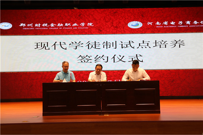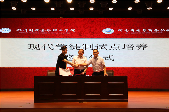 會議期間,舉行了電子商務(wù)產(chǎn)業(yè)學(xué)院、電商專業(yè)現(xiàn)代學(xué)徒制試點(diǎn)培養(yǎng)簽約儀式。