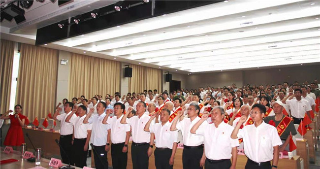 會議中,全體班子成員帶領(lǐng)全院教職工黨員重溫入黨誓詞,全體黨員面向黨旗,緊握右拳,宣誓聲鏗鏘有力,充滿激情,入黨誓詞字字千鈞,錚錚誓言昭示共產(chǎn)黨人的使命和擔當。