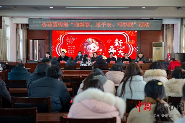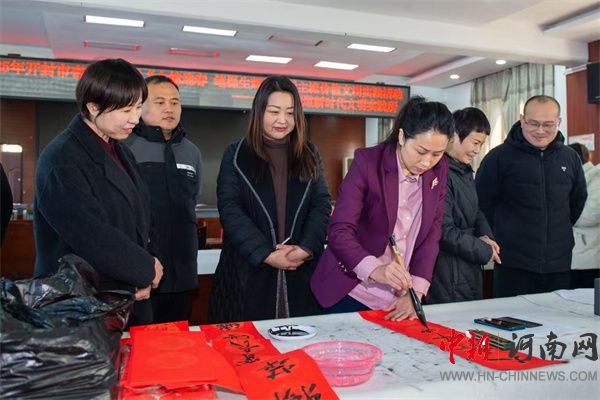 中新河南網(wǎng)1月16日電:無聯(lián)不成春,有聯(lián)春更濃。隨著2025年春節(jié)的腳步日益臨近,為傳承和弘揚(yáng)中華優(yōu)秀傳統(tǒng)文化,營(yíng)造歡樂、喜慶、祥和的春節(jié)氛圍。1月16日,開封市示范區(qū)杏花營(yíng)街道邀請(qǐng)開封市老干部學(xué)習(xí)活動(dòng)中心,組織政協(xié)委員開展“委員妙筆寫春聯(lián) 墨香送福迎新春”寫春聯(lián)活動(dòng)。市老干部學(xué)習(xí)活動(dòng)中心主任楊盈盈、區(qū)政法委副書記王敏、杏花營(yíng)街道辦事處主任杜文濤、街道黨工委副書記孟凱、區(qū)政協(xié)委員郭顏、范君龍、機(jī)關(guān)干部、群眾代表參加活動(dòng)。