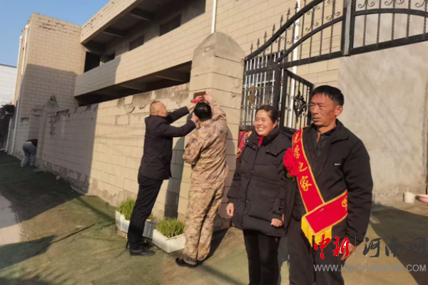 中新河南網(wǎng)12月17日電:為弘揚(yáng)擁軍優(yōu)屬、擁政愛民的優(yōu)良傳統(tǒng),營造“一人參軍,全家光榮”的濃厚社會(huì)氛圍,2025年12月17日上午,開封市示范區(qū)杏花營農(nóng)場退役軍人服務(wù)站聯(lián)合場武裝部走進(jìn)秋季入伍新兵家中,親手懸掛“光榮之家”牌匾,用實(shí)際行動(dòng)向他們送去黨和政府的關(guān)懷和敬意。