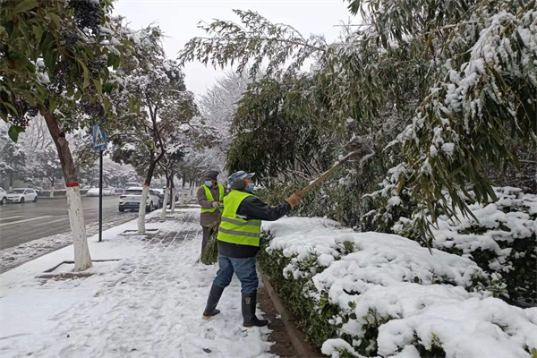 示范區(qū)城管局園林處積極行動清理積雪 防止樹木倒伏斷枝