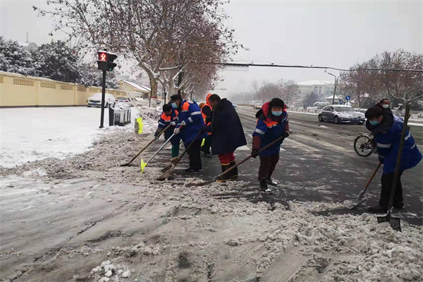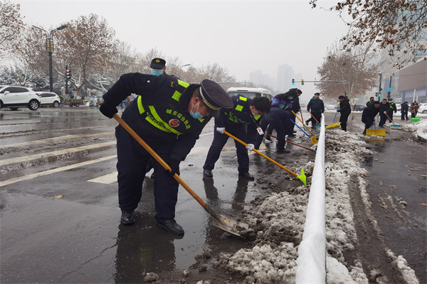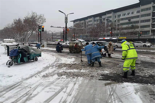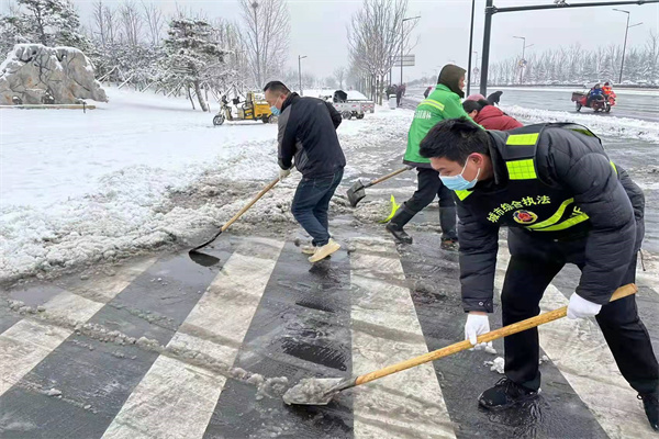 開封市示范區(qū)城管局出動(dòng)1900余人連夜清雪除冰