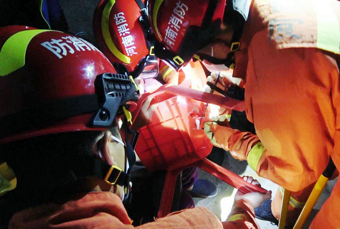 河南襄城:一名小女孩手指被卡塑料椅 消防隊員立即趕赴破拆救援
