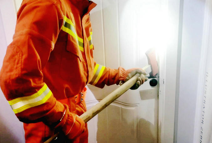 現(xiàn)場(chǎng)指揮員立即下達(dá)作戰(zhàn)指令,命令參戰(zhàn)人員利用消防斧、撬杠、液壓擴(kuò)張器等破拆工具對(duì)房門進(jìn)行破拆。由于破拆聲響較大,小女孩受到驚嚇后情緒十分激動(dòng),經(jīng)家人和現(xiàn)場(chǎng)救援人員多次安慰后,情緒稍微緩和。