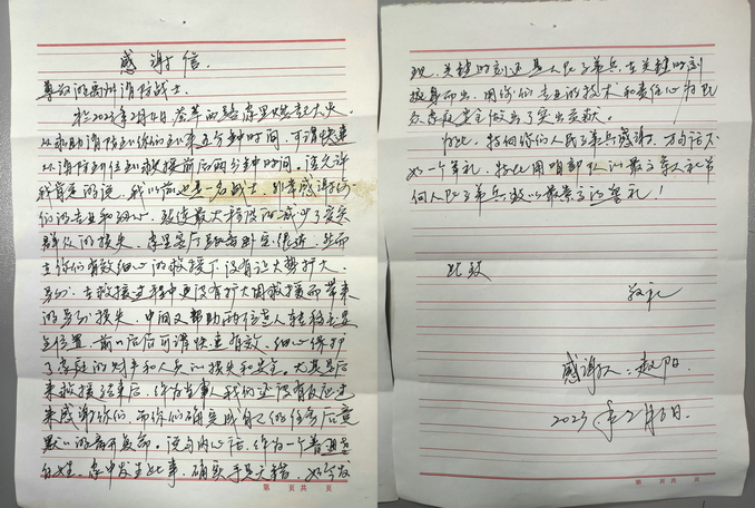 一封書信看似簡單、一句感謝看似平淡,表達(dá)了老百姓對消防救援隊(duì)伍的感激之情,不僅是對救援工作的支持與褒獎(jiǎng),更是對消防救援隊(duì)伍的一種鼓勁和肯定。