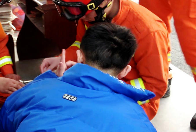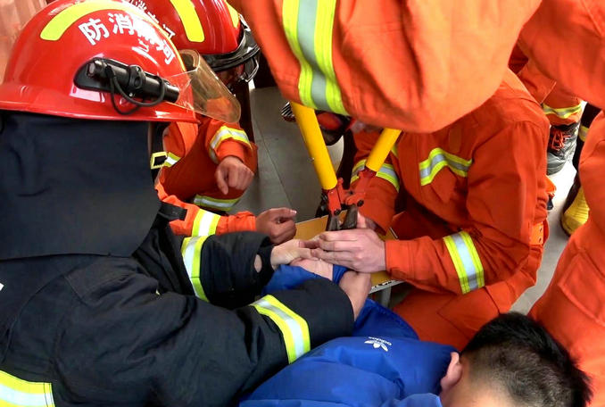 河南襄城:開學首日男生貪玩不慎卡手 消防隊員緊急趕赴破拆救援