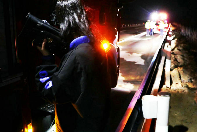 因事發(fā)車輛上有兩名女子和一名三個月大的嬰兒,考慮到天氣比較寒冷,高速上車流量較大,為了安全起見,救援人員將她們送至高速收費站交由現(xiàn)場工作人員處理。