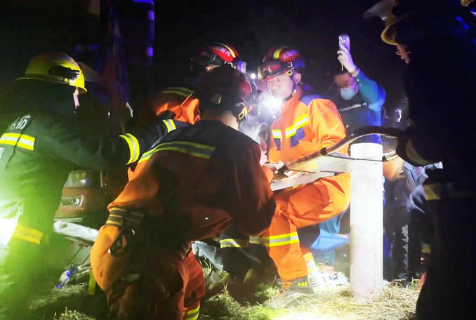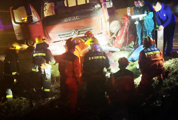 河南許昌:貨車與三輪車相撞一人被困 消防醫(yī)護(hù)聯(lián)手成功實(shí)施救援