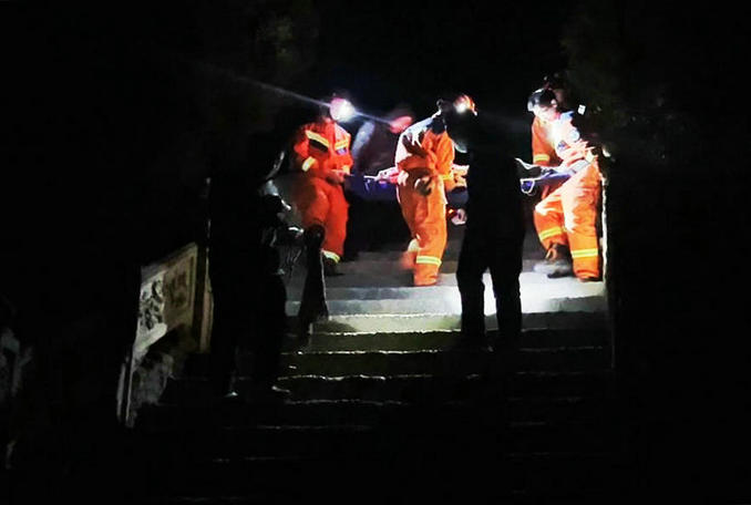 由于山勢陡峭,下山的道路更是崎嶇不平,救援工作困難重重。