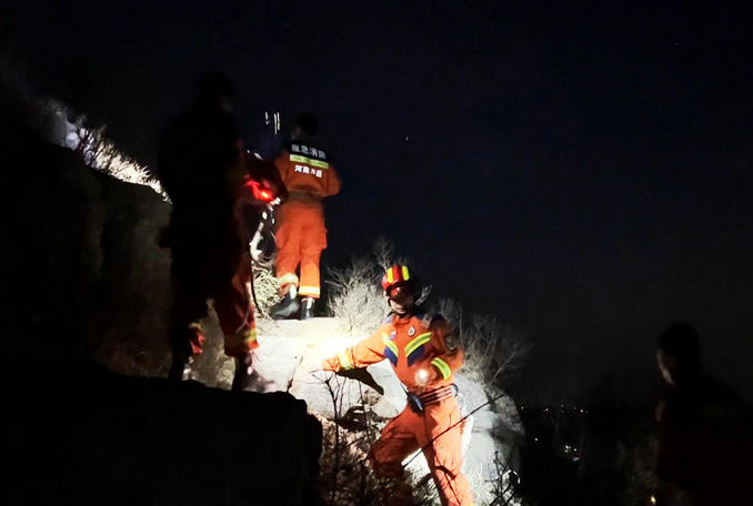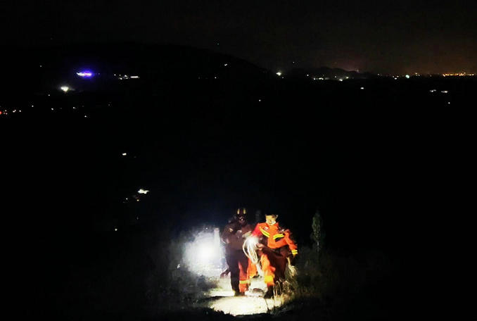 因無法準(zhǔn)確描述自己所處的位置,被困女子便讓同行的家人在山腳下接應(yīng)消防救援人員。到達(dá)山腳后,在被困女子家人的帶領(lǐng)下,消防救援人員背負(fù)救援器材徒步上山。