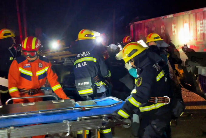 救援人員默契配合,經(jīng)過約5分鐘時(shí)間,成功將被困人員救出,并交由現(xiàn)場(chǎng)醫(yī)護(hù)人員救治。