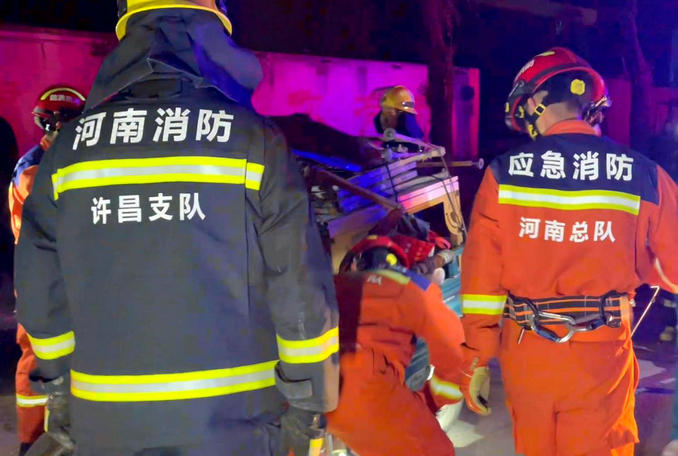 河南許昌:三輪車追尾半掛車一人被困 消防隊(duì)員火速趕赴破拆救援