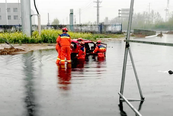 到達(dá)現(xiàn)場(chǎng)后,救援人員發(fā)現(xiàn)被困人員處于積水最深的位置,由于道路處于施工階段積水很多,駕駛員在行駛的過(guò)程中沒(méi)有注意到水位的變化,最后意外陷入其中。