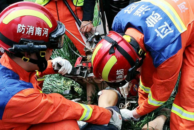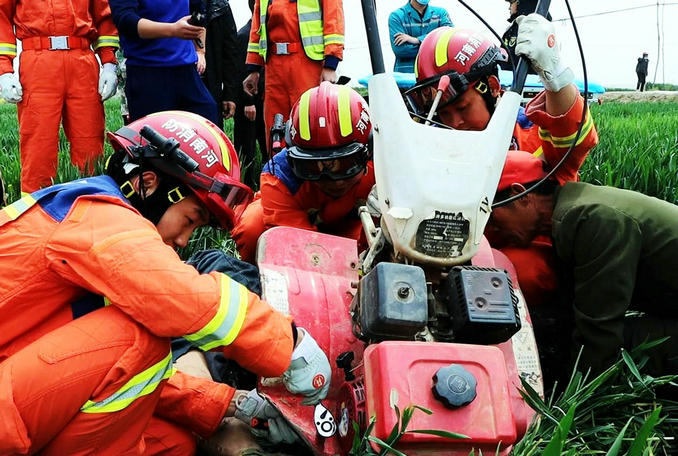 河南鄢陵:男子被農用旋耕機意外刺傷 消防隊員火速趕赴破拆救援