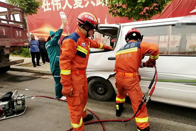本網(wǎng)訊(張培 姚浩瀚)4月17日14時52分,長葛市董村鎮(zhèn)河涯劉村,一輛面包車為避讓一輛三輪車導致方向失控,與正在行駛的半掛車發(fā)生追尾,面包車駕駛員被卡在駕駛室內(nèi)無法脫困。接警后,許昌市消防救援支隊長葛市大隊指揮中心迅速調(diào)派12名消防救援人員緊急趕赴現(xiàn)場處置。