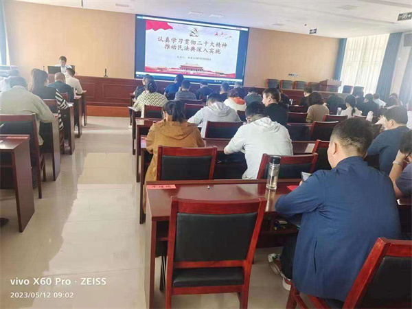 胡德功講課的主題為,深入學(xué)習(xí)貫徹二十大精神,扎實(shí)推動(dòng)民法典深入實(shí)施。課程主要講解了十八大以來,法治建設(shè)取得的新成就、黨的二十大對(duì)建設(shè)法治中國(guó)的新要求、深入實(shí)施民法典開啟法治中國(guó)建設(shè)新征程,三個(gè)方面的主要內(nèi)容。