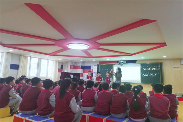 音樂老師劉珍余執(zhí)教的是四年級下冊《土風(fēng)舞》一課。劉老師采用了豐富多彩的教學(xué)活動,把學(xué)生帶進優(yōu)美的音樂課堂。采用歌、舞、圖片、游戲相結(jié)合的綜合手段,進行直觀教學(xué),并將簡單的樂理知識換成多媒體的呈現(xiàn),調(diào)動了學(xué)生學(xué)習(xí)的積極性,使課堂教學(xué)達到了良好的效果。